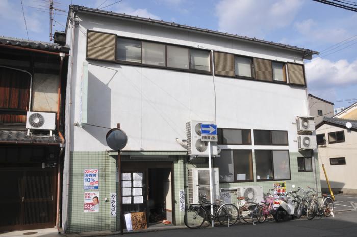 大徳寺のすぐ東を通る、きれいに舗装された新大宮商店街。商店街からすぐ近くに金龍湯と書かれた看板が目にはいってきます。2階が住居のようになっている建物が金龍湯です。